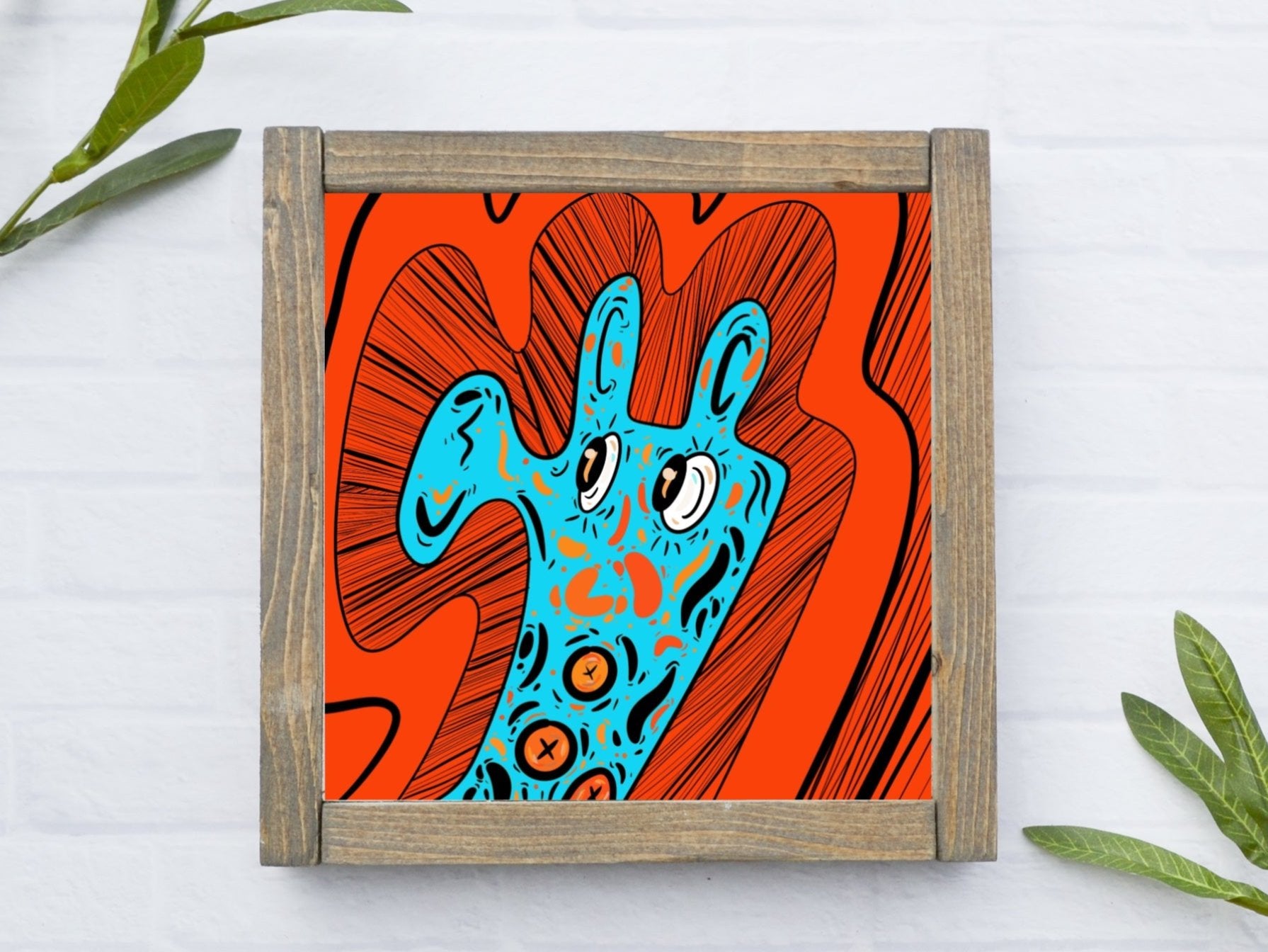 This purchase includes one laminated 8x8 High Gloss Print of Digital Artwork ‘Tim’, and one digital print of ‘Tim’.
